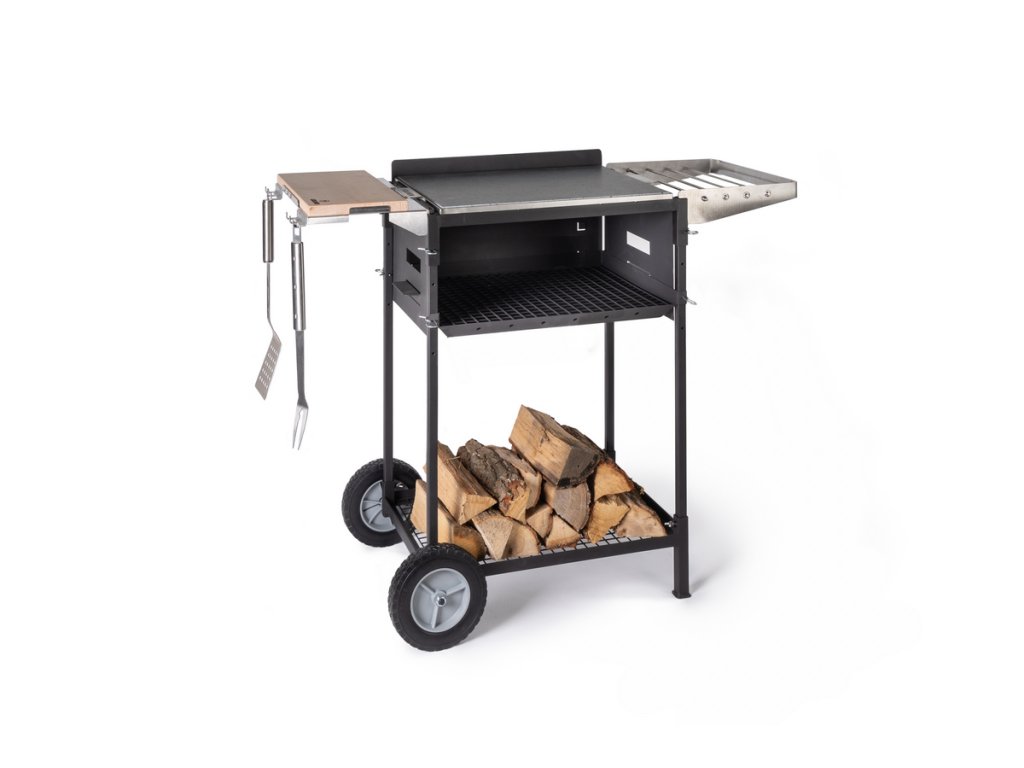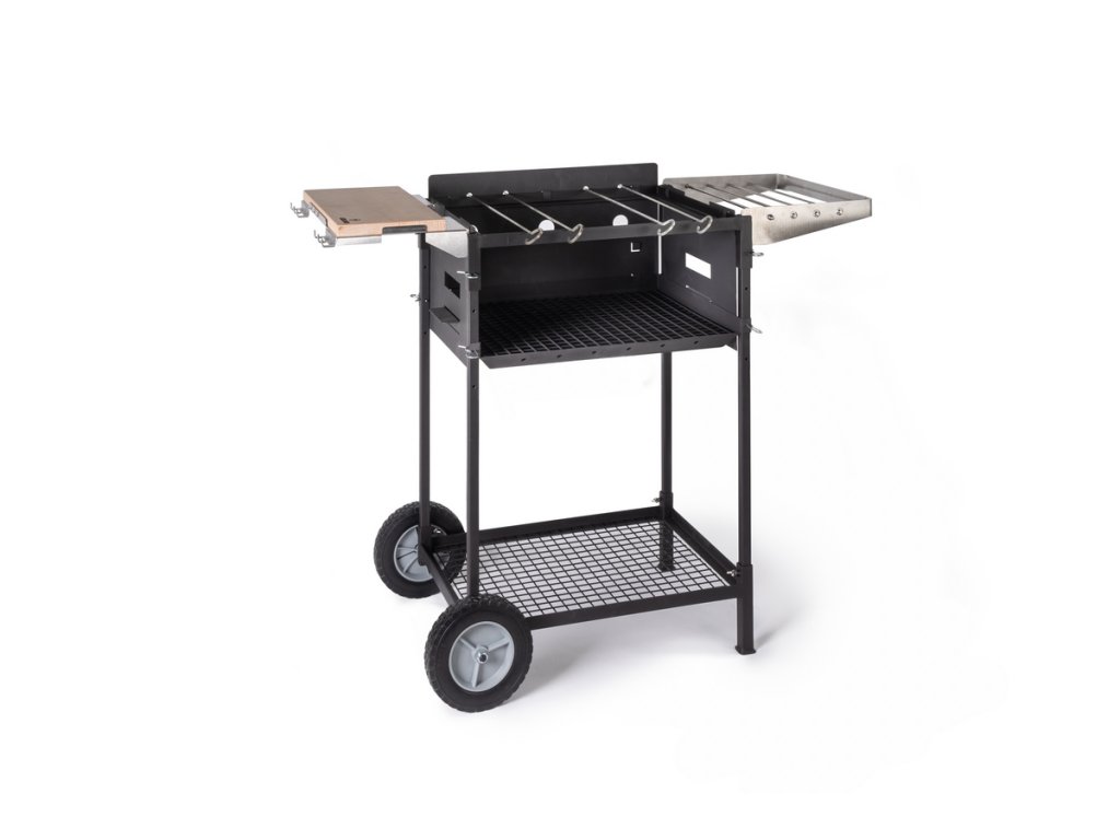 Pojízdný skládací multifunkční gril s lávovým kamenem 50x40x2cm (Itálie), grilovací mřížkou a špízovými jehlami