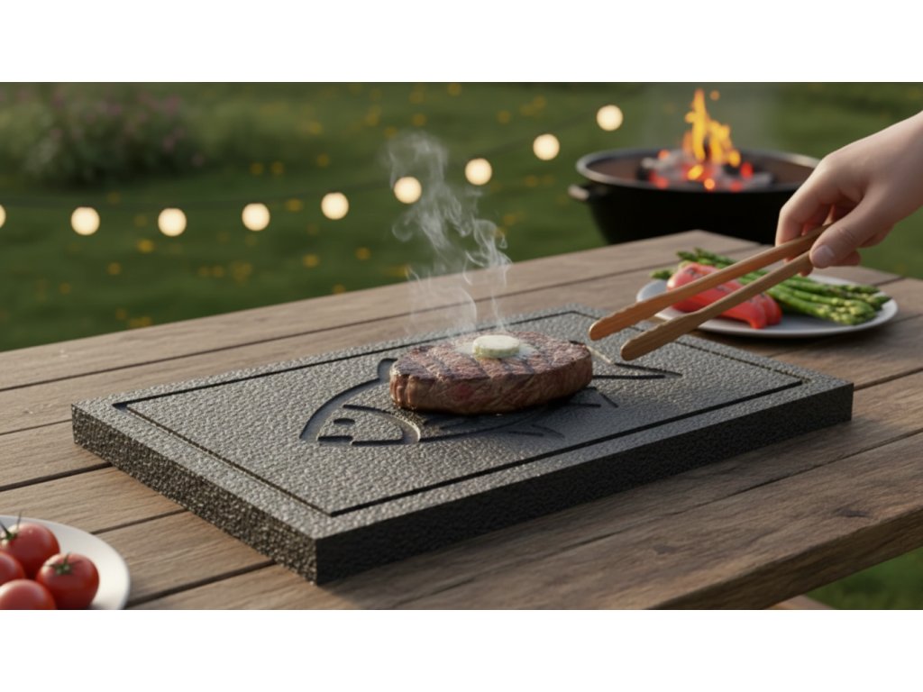 Tento kámen o velkorysém rozměru 50 × 30 cm není jen designovým výstřelkem. Je to robustní deska z italské sopečné horniny, která promění váš gril v profesionální venkovní kuchyni.