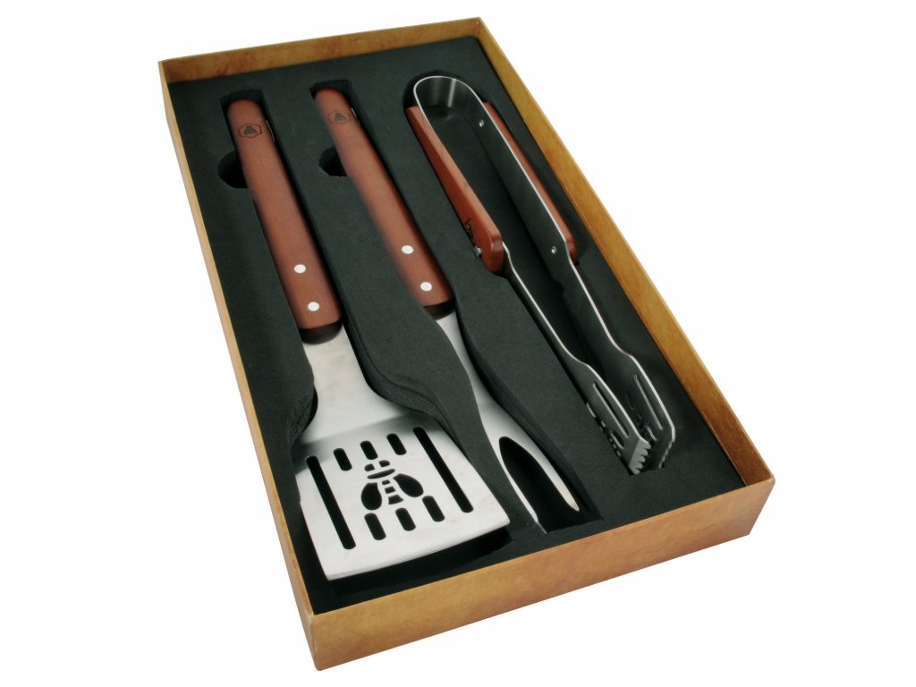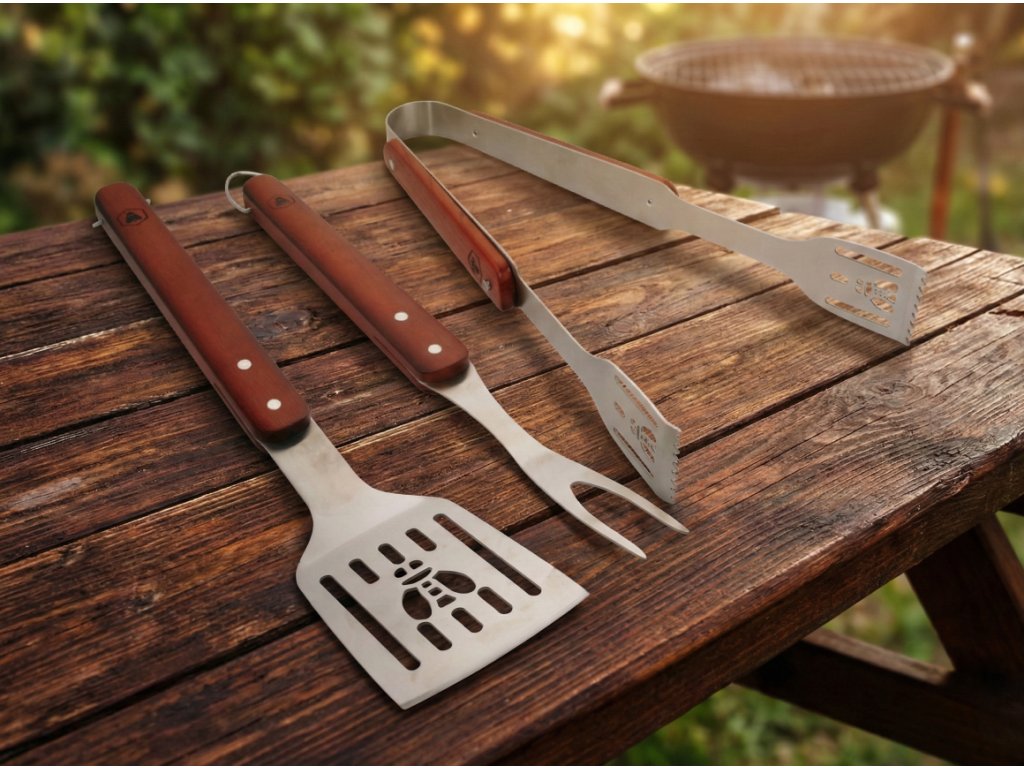 Tato sada byla navržena tak, aby ladila s poctivým grilováním – ať už připravujete steaky na našem grilovacím kameni, nebo otáčíte klobásky na klasickém roštu. Dlouhé rukojeti zajišťují, že vaše ruce zůstanou v bezpečné vzdálenosti od žáru, zatímco ergonomicky tvarované dřevo padne do dlaně jako ulité.