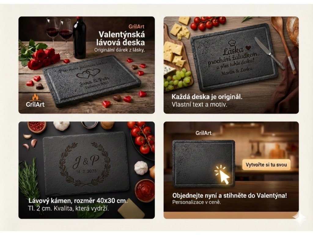 Limitovaná valentýnská edice lávového kamene GrilArt je vytvořená pro všechny, kteří chtějí darovat něco víc než jen dárek. Tento prémiový kámen z přírodní lávy je zasazený do elegantního nerezového rámečku a doplněný jemným gravírováním, které dodává každému kusu osobní a výjimečný charakter.